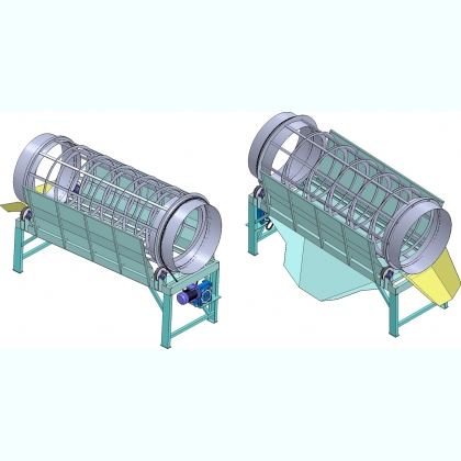 Просіювач тирси барабанний призначенний для розділення сировини за розміром частинок, відділення більших частин від меншої однорідної маси, використовується у будівельній, гірничодобувній та деревообробній галузях.